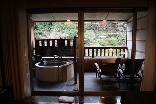 前回の続きで、水回りと露天風呂を中心に紹介します(^^)/ パウダールームは大理石調で、こちらも高級感があります! 旅館というより(一昔前の)高級ホテルのような雰囲気。 シンクは正面と右手(写真なし)のダブル。 シャワーブースもありますが滞在中は使…